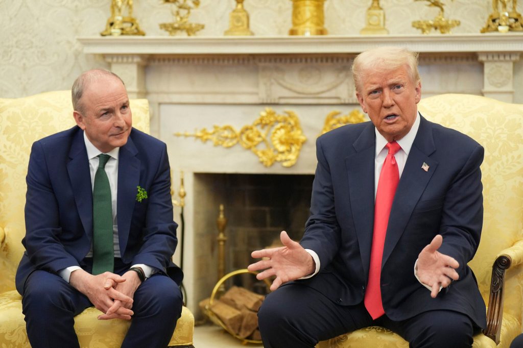 À l’occasion de la rituelle visite du Premier ministre irlandais à l’occasion de la Saint-Patrick, Micheál Martin, le Président Trump a repris son discours antieuropéen ciblé sur le pays qui fut autrefois un grand pays d’émigration vers les Etats-Unis : « vous avez pris nos sociétés pharmaceutiques et d’autres sociétés… une fiscalité appropriée, et cette belle île de cinq millions d’habitants, a pris toute l’industrie pharmaceutique des États-Unis ».